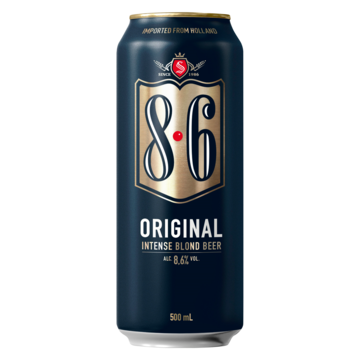 Let op: prijs kan afwijken. 8.6 Original Zwaar Blond Bier is een speciaal blond bier met een eigen karakter. Een krachtig, stevig bier met een gouden gloed, aangenaam zoet en filmend rond de afdronk. Vol in body en rijk in mondgevoel. 8.6 Original heeft een fruitig palet door sublieme gisting. Nadrukkelijk fruitig en bloemig op het palet, warm en vol karakter. Sterk in alcohol, een elegant helder blond bier. Complex van smaak, mooi in balans. Gebrouwen met natuurlijk mineraalwater uit eigen bron en de beste gerstemout, tarwe en hop.Alcoholpercentage: 8,6%Het lekkerste op temperatuur: 6-8 graden celsius. Bewaren: koel en donkerGoed te combineren met: Ganzenlever (Foie Gras), gerookte hammen en gedroogde worst, blauwaderkazen, kruidige tapas met smaken als knoflook en koriander