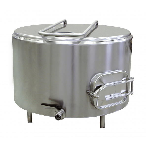 Geïsoleerde roestvrijstalen tank AISI 304. Met geperforeerde losse filterbodem uit 2 stukken. Diameter gaatjes 1,5 mm. Optie tankdeur voor het uitscheppen van draf: 400 x 300 mm. Uitgang met vlinderklepkraan DN50 (andere maat mogelijk), 150 mm boven vloer. Eendelig niet-geïsoleerd deksel. Bodem 2% hellend uitgevoerd. ø x h : 1280 x 850 mm *Speciale levertijden en transportkosten. Voor meer informatie kan je contact opnemen met onze klantendienst.