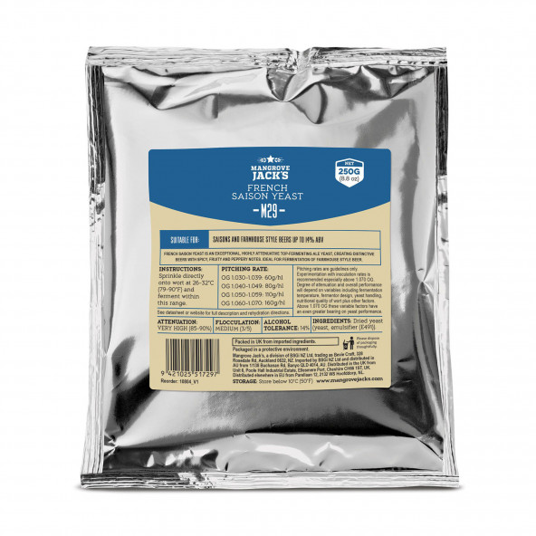 Deze Franse saison gist is een bijzondere, sterk vergistende bovengist die speciale bieren met kruidige, fruitige en peperige tonen oplevert. Ideaal voor de vergisting van saison bieren. Geschikt voor het brouwen van Saisons met een alcoholpercentage tot 14%. Saccharomyces cerevisiae var. diastaticus Uitvlokking: 3 Vergisting: 85-90% Alcohol tolerantie: 14% Aanbevolen temperatuurbereik: 26-32 °C