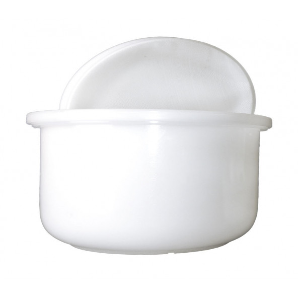 Binnendiameter (boven) x binnendiameter (onder) x hoogte = 145 x 145 x 85 mm.
