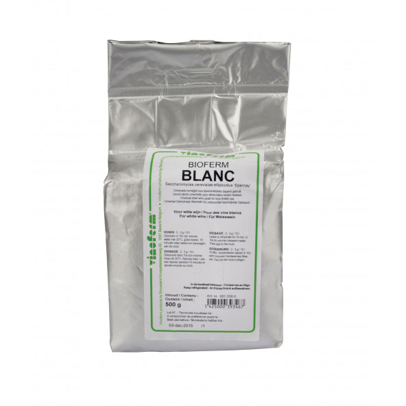 Saccharomyces Cerevisiae var. Cerevisiae. Korrelgist speciaal geschikt voor de vergisting van witte tafelwijnen met behoud van hun natuurlijke aroma’s (produceert weinig secundaire aroma’s ). Alcoholtolerantie 14% vol. Temperatuurbereik: 18-30°C Dosis: 2-3 g/10 liter Korrelgisten BIOFERM BIOFERM heeft door vele jaren van ervaring een uitstekend gamma reingisten samengesteld die voor iedere wijnmaker een oplossing biedt. Houdt u meer van zoete wijnen? Heeft u een gist nodig voor lage temperaturen, houdt u meer van krachtige, rode wijnen? Voor ieder type is er een speciale gist beschikbaar. De BIOFERM korrelgisten zijn de enige gisten die, naast de verpakking van 7 g, ook in een vacuümverpakking van 100 g verkrijgbaar zijn. Dit garandeert een maximale houdbaarheid.
