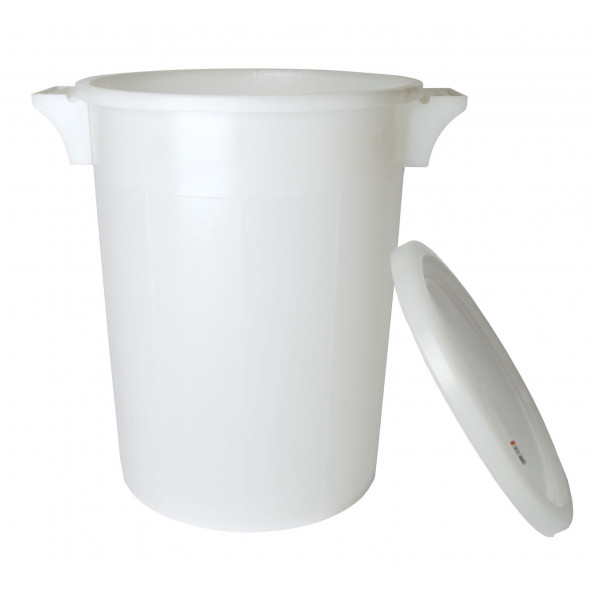 Mostemmer 50 l in wit plastic. Degelijke constructie. Met deksel. Stevige ingebouwde handvaten.