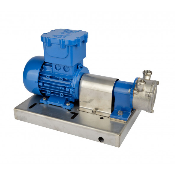 De motor van de explosievrije pomp voldoet aan de richtlijn volgens ATEX en is geschikt voor het verpompen van hoog alcoholische vloeistoffen. Debiet 29 l/min 380 V 3/4″ BSP in- en uitgang Pomp niet laten droogdraaien, maar eerst opgieten met vloeistof, daarna werkt de pomp zelfaanzuigend.