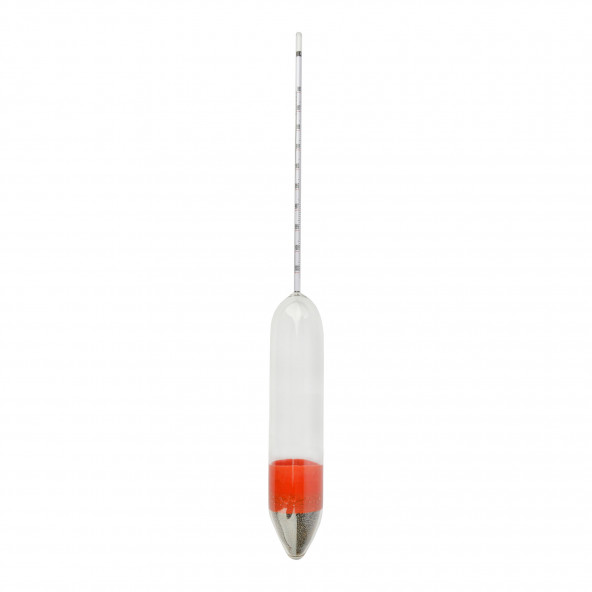 Een zeer nauwkeurige densimeter, ook wel hydrometer of dichtheidsmeter genoemd, voor professionele wijnmakers die hun einddichtheid heel nauwkeurig wensen te bepalen. Specificaties: bereik: 0,985-1,003 SG = -15°Oe tot +3°Oe aflezing tot op 0,0002 SG = 0,2°Oe lengte: 335 mm; diameter: 32 mm inclusief handleiding met temperatuurcorrectiewaarden degelijke opberghuls meegeleverd