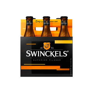 Let op: prijs kan afwijken. Swinckels’ is een volmout pilsener gebrouwen in Lieshout. Swinckels’ wordt gebrouwen met een blend van Cascade hop uit de Amerikaanse Yakima-vallei en de Polaris hop uit de Hallertau regio in Duitsland. Deze hoppen geven Swinckels’ zijn unieke karakter, te omschrijven als licht kruidig en fruitig met een verfijnde bitter, afsluitend met een mooie, zachte afronding. De combinatie van een unieke blend van hopsoorten, mineraalwater uit eigen bron en speciaal geselecteerd gerstemout uit eigen mouterij creeert een unieke smaak en geeft Swinckels’ zijn onderscheidende, complexe en verfrissende karakter. Alcoholpercentage: 5,3%Smaakpalet: volmout, rijk, helderHet lekkerste op temperatuur: 4 graden celsius. Bewaren: koel en donkerLekker bij: pittige gerechten, gegrild vlees