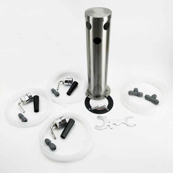 Originele triple tap font kit, essentieel om te gebruiken met de Kegerator Series X. Deze kit bevat de volgende componenten: Taptoren voor 3 tapkranen in geborsteld rvs 3 x Duotight-compatibele korte schachten 3 x zwarte, plastic taphendeltjes Voorgesneden EVABarrier-slang (bierlijn) Ø 4 x 8 mm (binnen x buiten) en EVABarrier-slang (gaslijn) Ø 5 x 8 mm (binnen x buiten) 3 x Duotight 6,5 x 8 mm push-in koppelingen om de bierlijn gemakkelijk aan te sluiten op de tapschachten 4 x metrische rvs M5-schroeven om de tap aan de koeler te bevestigen