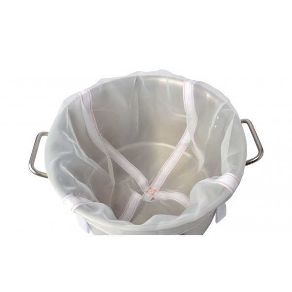 Met deze brouwzak en een enkele brouwketel heb je alle apparatuur in huis om een bier uit mout te brouwen. Te gebruiken met onze Brewferm® moutpakketten. makkelijk te reinigen: met de hand wassen met warm water en afwasmiddel. Driemaal spoelen met schoon water en ophangen om te laten drogen; af en toe wassen. sterke, herbruikbare brouwzak die je keer op keer kunt gebruiken (geen wegwerpzak) de brouwzak is voorzien van sterke riemen uit polypropyleen, waardoor je de zak gemakkelijk met een haak of katrol uit de brouwketel kunt tillen kan worden gebruikt als hopzak de naden bevinden zich aan de buitenkant van de brouwzak, waardoor er geen deeltjes in de zak achterblijven maaswijdte: 200 μm 100% polyester afmetingen: diameter x hoogte = 35 x 43 cm beschikbaar in verschillende afmetingen Let op: van zodra de met mout gevulde Brew Bag de bodem van de brouwketel raakt, mag je de temperatuur niet meer verhogen door directe verwarming. Hierdoor kan de Brew Bag aanbranden of smelten. Bijkomende tips: Door het mout fijner te schroten, vergroot je het contactoppervlak en versnel je de enzymatische werking, waardoor je het rendement van de Brew Bag maximaliseert. Spoelen (spargen) is niet meer nodig als je brouwt volgens de ‘Brew in a Bag-methode’.