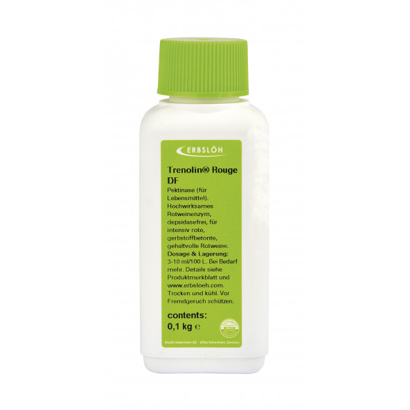 Hooggeconcentreerd meervoudig vloeibaar enzym. Verhoogt de kleuropbrengst en de tanninevrijgave bij rode druiven. Depsidasevrij. Bij voorkeur in de koelkast bewaren. Dosis: 10 ml/100 kg most op 15°C, met een contacttijd van 1-2 uur. Het gebruik van enzymen Over enzymen bestaan de wildste verhalen. Daarom hier even een aantal zaken op een rijtje. Tenzij anders vermeld, zijn de vermelde dosissen bij kamertemperatuur (20°C) en met een inwerktijd van 12 uur. Iedere temperatuurverlaging van 7° kan opgevangen worden door een verdubbeling van de dosis. Iedere halvering van de gewenste contacttijd kan eveneens opgevangen worden door een verdubbeling van de dosis. De volgorde van toedienen van ingrediënten is erg belangrijk. Het ene kan namelijk de werking van het andere sterk beïnvloeden, ook in negatieve zin! Voeg bv. nooit bentonieten toe als de enzymen nog in werking zijn. Laat dus minimaal 12 uur tussen de enzymentoevoeging en de bentoniet-toevoeging.