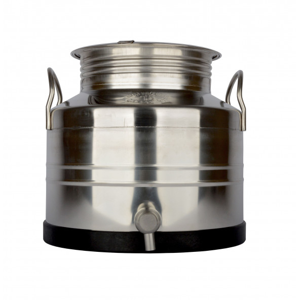 Handige transport- en opslagvaten voor water, olie, wijn,… Kunnen ook als gistingsvat gebruikt worden (mits montage waterslot op deksel). Grote opening met hermetisch sluitend deksel Volledig rvs met handvaten en aftapkraan Speciaal gerolde en gelaste bodem zonder dode hoeken