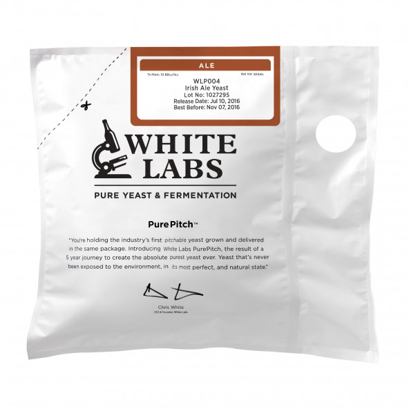 Dit is de gist van een van de oudste stoutbrouwerijen ter wereld. Hij zorgt voor een vleugje diacetyl, gecompenseerd door een lichte fruitigheid en een zweem droge scherpte. Fantastisch voor Ierse ales, stouts, porters, browns, reds en een erg interessante pale ale. Vergistingsgraad: 69-74% Uitvlokking: Gemiddeld – Hoog Vergistingstemperatuur: 18°-20°C (65°-68°F) Inhoud: 500 ml White Labs – PurePitch™ De eerste gebruiksklare gist die wordt gekweekt en geleverd in dezelfde verpakking. Deze gist is nog nooit blootgesteld aan de omgeving en is zo volmaakt en natuurlijk mogelijk. Hij is het resultaat van vijf jaar onderzoek om de zuiverste gist ooit te creëren. Gemiddelde viabiliteit (levensvatbaarheid) van PurePitch® vloeibare gist over een periode van zes maanden: Tijd Viabiliteit Na 1 maand 99,21% Na 2 maanden 98,05% Na 3 maanden 90,26% Na 4 maanden 84,28% Na 5 maanden 79,35% Vind hier de perfecte White Labs gist